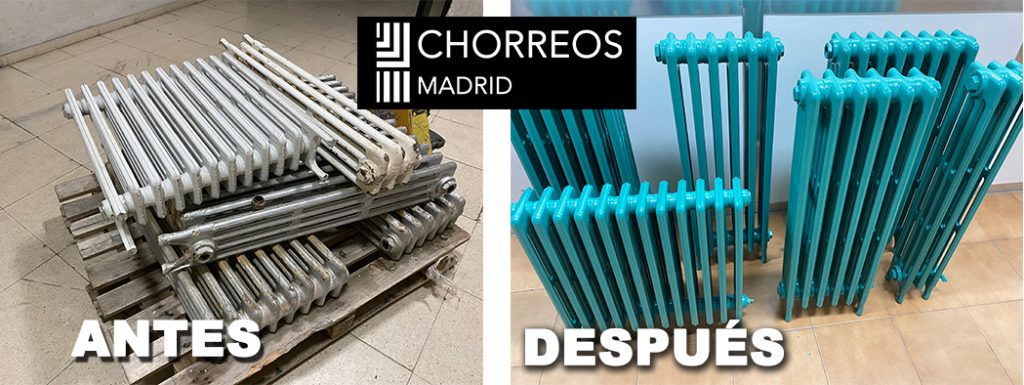 Chorreos Madrid utiliza una de las técnicas más expandida en la restauración de bienes muebles en general, siendo la proyección de áridos o decapado. Los resultados son la restauración total de radiadores de aluminio, radiadores de hierro fundido o radiadores de chapa metálica, ventanas, fraileros, mallorquinas, contraventanas, venecianas, balcones, persianas, etc.